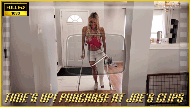 In our previous clip, Jessica comes up with the crazy idea of jumping off a chair in heels in hopes of getting the leg cast that she's always wanted. After hurting her leg, she immediately regrets it and questions your judgement for letting her do it. She got the LLC she wanted but is miserable and thinks it was not worth it. In this clip she's getting up and trying to learn her crutches and is having an terrible time with it. She's very clumsy and hurts her sore leg a few times before returning to the couch and pouting about her situation. Cut to a month later and you're coming over and finding Jessica "feeling fantastic" and up and about on her crutches in a sunny mood. She's not mad at you any more and her cast has aged a lot. She crutches around a little bit and then has a seat on the couch to catch you up on what it's been like. She says that she's probably not quite ready for sex, but that she's open to the possibility of receiving a tongue bath from you. You're shocked. She says her toes need some love and also some other things. In the bedroom, she lays back and tells you that she needs you to clean her toes and they need your undivided attention. She thinks you're not adequately appreciating her cast, so she asks you to kiss it all over. Then it's back to the toes and just when you think you've finished up, she tells you that you're not done yet and pulls off her panties. You can probably guess what happens next! Finally, she asks you to touch yourself while admiring her cast and after a while of that, she can't take it anymore and asks you to just do her.